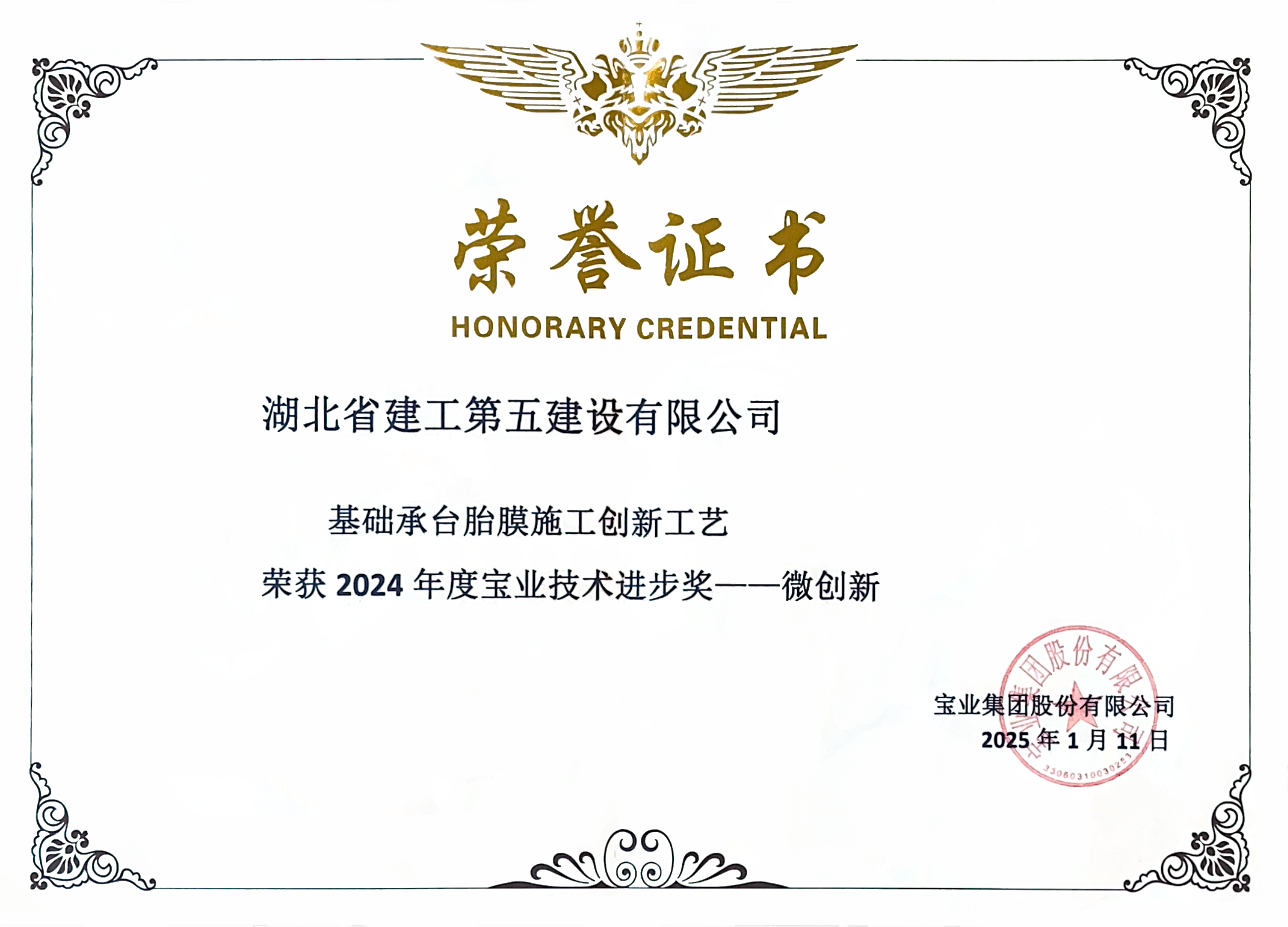 • 湖北省建工第五建設(shè)有限公司榮獲寶業(yè)集團(tuán)2024年度寶業(yè)技術(shù)進(jìn)步獎(jiǎng)微創(chuàng)新獎(jiǎng)